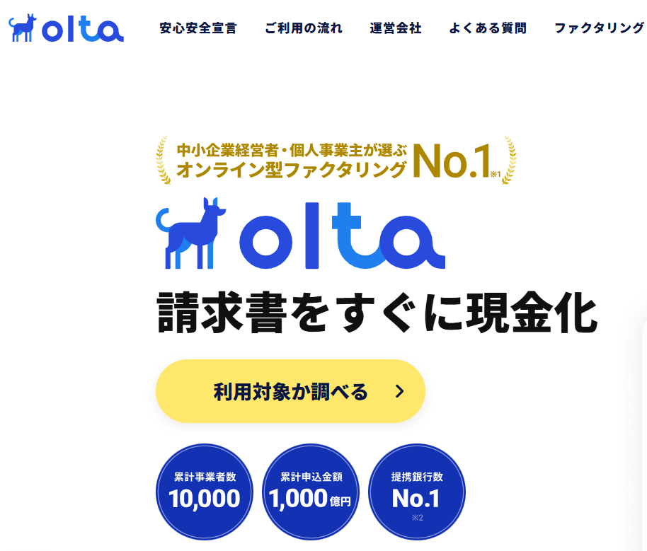 OLTAは、クラウドファクタリングを提供する先進的なサービスで、AI審査によるスピーディーな資金調達が可能。書類提出もオンラインで完結し、全国対応。中小企業や個人事業主の資金繰りをサポートします。